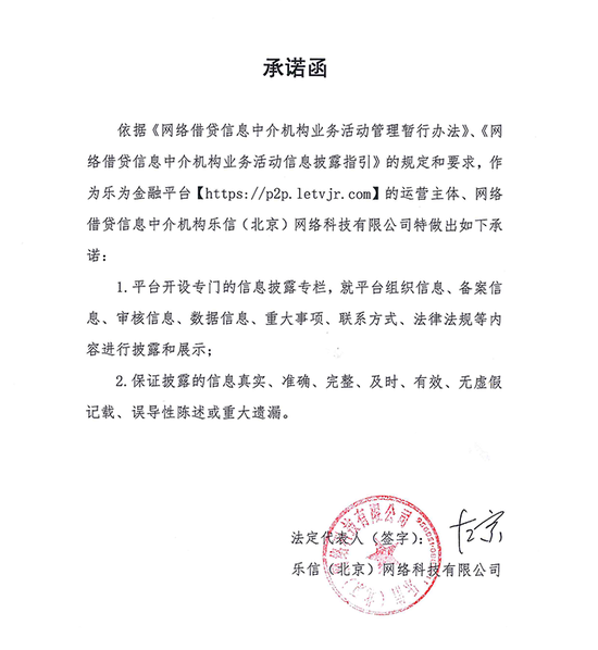 亚洲财经在乐为金融网站信息披露栏看到,更名后的乐为金融已承认自己是P2P,并将自身定位为网贷信息中介机构。