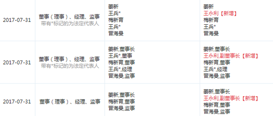 但任职未满1年,王永利又一次离职。企查查显示,2018年5月16日,王永利的副董事长一职已显示为退出状态。截至目前,尚未有消息明确王永利的最新去向。