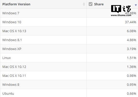 但另一方面,来自NetMarketShare的最新报告显示,Windows 10的全球市场份额有所下降,Windows 7却有所增长。NetMarketShare和StatCounter使用了不同的算法来分析操作系统的市场份额。