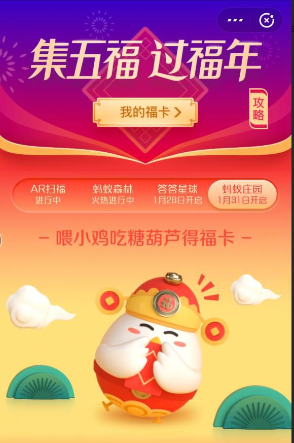 根据官方活动规则,还有两种集福方法,一种答答星球玩法是本月的28开启,另一种是蚂蚁庄园玩法是本月的31号开启!