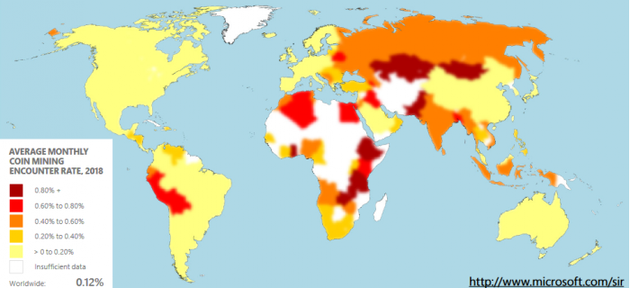 另一方面,包括加密攻击和勒索软件攻击在内的恶意软件攻击在2018年有所下降。微软称恶意软件攻击减少了34%,这确实是个好消息。该公司分析每天通过微软云的6.5万亿个威胁信号获得了这个数字。微软这份报告还显示,在2018年,爱尔兰、日本、美国和中国的加密货币开采率最低,加密货币开采率在2018年整体下降了36%。