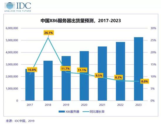IDC:2018年第四季度中国X86服务器市场同比增11.1%