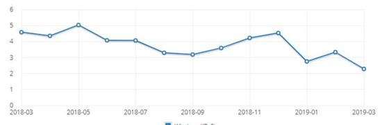 但该去的还是要去了,之后就是一路走低。NetMarketShare的最新统计数据显示,在刚刚过去的2019年3月份,Windows XP的份额已经只剩下2.29%,创下历史新低,后续即便再反弹也不会有多大波澜了。