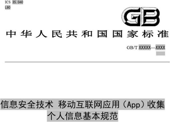 记者了解到,这次全国信息安全标准化技术委员会公布了由国家市场监管总局和国家标准化管理委员会共同起草的《信息安全技术 移动互联网应用(App)收集个人信息基本规范(草案)》。