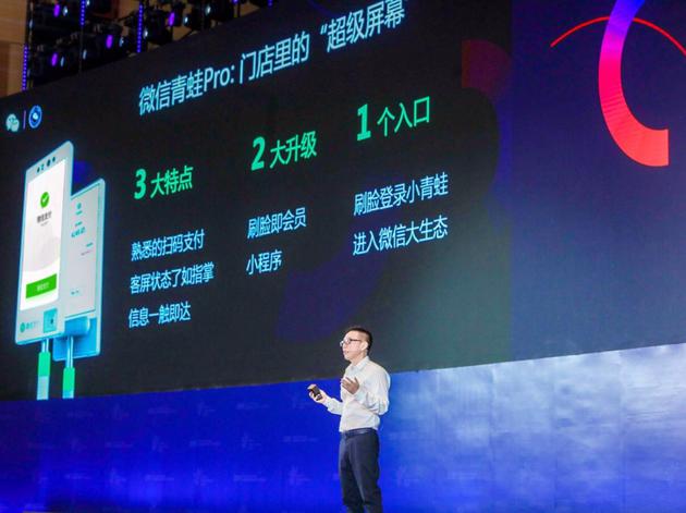 新京报讯(记者 白金蕾)8月26日,微信支付在重庆智博会上正式发布了搭载扫码器、双面屏的智能商业硬件“微信青蛙Pro”。在开放支持小程序、微信卡包的基础上,微信支付还推出了“互动海报”等多个行业专属新功能,实现“刷脸即会员”,真正建立起门店智能硬件入口与微信大生态的连接。