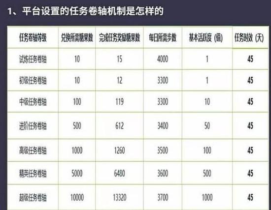 3、 对于有一定资金的用户,可以用糖果兑换不同等级的卷轴任务,级别越高收益率越高。譬如10枚糖果可以兑换一个初级卷轴任务,在任务有效期内,只要我每天走了3300步,任务期后平台就会发放12枚糖果。也就是,存入一定糖果,45天就带来20%收益。
